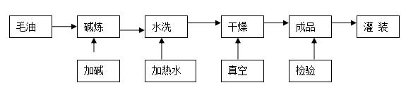先將水洗后的堿煉油吸入真空干燥鍋,在真空狀態(tài)下邊攪拌,便升溫達到98℃左右,再攪拌15分鐘,使水分降到0.1%以下,開始降溫至75℃后,破真空。打開脫色泵到濾油機進行成品油分離,得到成品油。